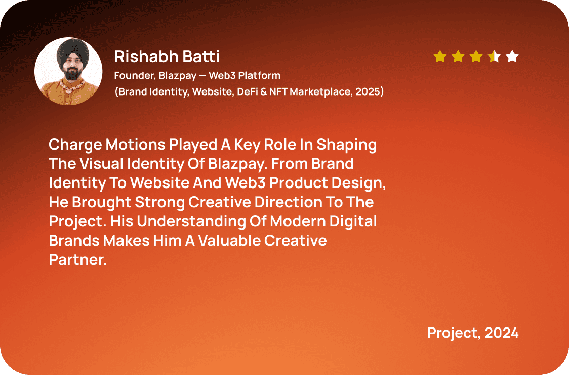 Charge Motions specializes in motion design, logo animation, brand identity, and digital brand experiences for startups, Web3 companies, and modern brands.